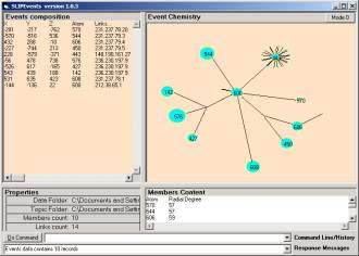 Although the SLIP-I-RIB technology was developed for seven regional Computer Emergency Response Teams (CERTs) the small Warehouse Browser will take ANY event log, and allow the user to define any link analysis relationship.  The Technology Browser produces clustered visualization of the linkage over any small or large dataset.   The Event Browser will produce two layers of event chemistry in correspondence to event atoms and event compounds.   The Enterprise IMIDS (under development now) will push small mobile automation controllers (stand alone programs) from the desktop into Distributed (IDS) and DEDS components.