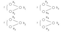 In Figure 2 we note that the analytic conjecture will establish a relationship between IP addresses that are using various ports;  (b(1), b(2), (b3), (b4), but have on, at least one case, attacked through the same port.  This is a wide net.  Given the chaining relationship in Figure 2 we would expect that a(1), a(2), a(3), a(4), a(5) would become part of a single cluster.