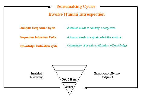 The 3rd cycle is like the knowledge portal concept (developed within the KM community) where a community is assisted in evolving a technical language to talk about the history of event types and what to do about events of one type or the other.   Each of these have a perception phase and an action phase.
