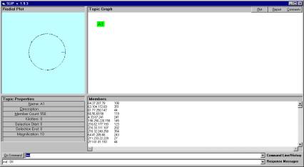 Figure 7 shows a single node in the Topic Graph window and a random distribution of 550 atoms to the circle in the Radial Plot window.  Topic Properties indicate the magnification and other metadata elements.   These elements are (soon) to be stored in XML resources and persisted even when the Browser is closed.