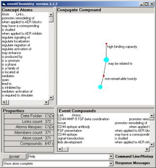 However, when syntagmatic units are assembled into a graph, we see that the role of concept and relationship can be flipped. The flip of roles is what Don and I call a conjugant map. These conjugants are seen clearly when navigating a complicated graph using the Event browser. In navigation, simple structures alternate between compounds (with a link in the middle) and atoms, with links not being in the middle.