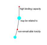 Figure 3a is a compound with two relationships { high binding capacity, non-remarkable tonicity } and an unlabeled atom linked with non-remarkable toxicity.