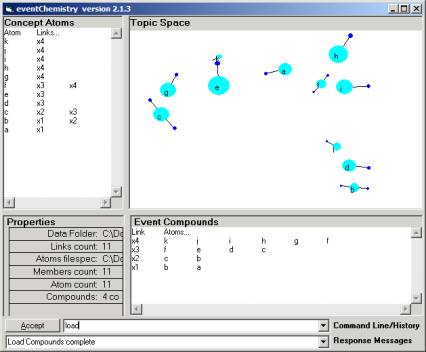 Part of the effect of the analytic conjecture is to produce the atoms and the links. Once these are produced, the warehouse has done its job. The “retail” products are the atoms.txt and links.txt files. These two files are all that is used by the SLIPCore browser. The atoms and links are encoded into a special memory map where some solid computer science allows the just in time composition of exactly those eventCompounds that are defined by the set of atoms and the set of links.