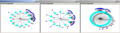 Figure 4 shows five relative primes. The atoms that compose these relative primes were separated from the other atoms using the clustering of atoms on the circle. The identification of these specific compounds is a consequence, not of random process, but of the strengths of the hidden structure that exists in the data. So inspite of the randomness of the scatter-gather process on the circle, the same hidden structure is revealed each time, with very small variations.