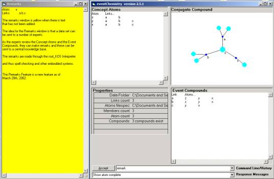 The Remark window pops up into a resizable window and allows the entry of information about the concept atom or event compound that is selected in either the concept atom of event compound list.
