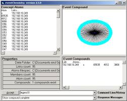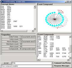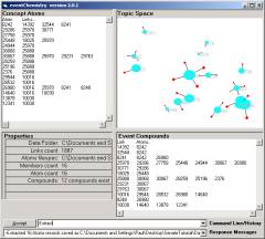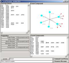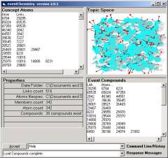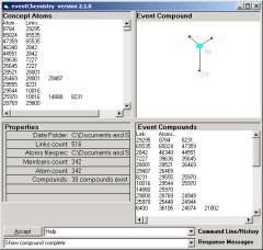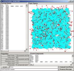 Figure 3 shows a small category randomly scattered and then rendered in the Topic Space window of the Event browser. The properties area shows that there are 12 simple compounds in the category. In the Event Compound window, pictured in Figure 4, we show the largest simple compound in this small category. Six of the atoms are involved.